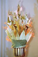 И в-третьих, форма букета. Не углубляясь в тонкости, скажем: если составление букета для дамы дает большой простор для фантазии, то мужской букет должен иметь, как правило, пирамидальную, треугольную форму или должен быть выполнен в линейном стиле.